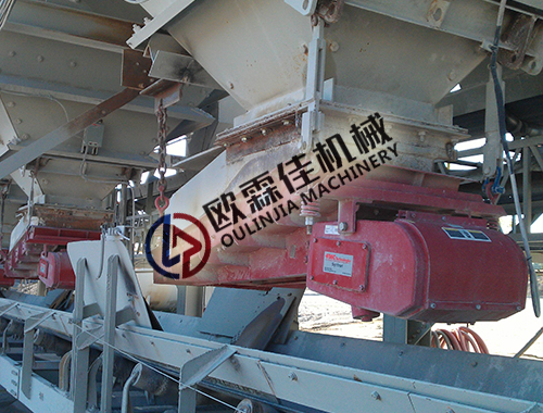 根據(jù)設備性能要求,配置設計時應盡量減少物料對槽體的壓力,按制造廠要求,倉料的有效排口不得大于槽寬的四分之一,物料的流動速度控制在6-18m/min.對給料量較大的物料,料倉底部排料處 應設置足夠高度的攔礦板; 為不影響給料機的性能,攔礦板不得固定在槽體上。為使料倉能順利排出,料倉后壁傾角最好設計為55-65度。